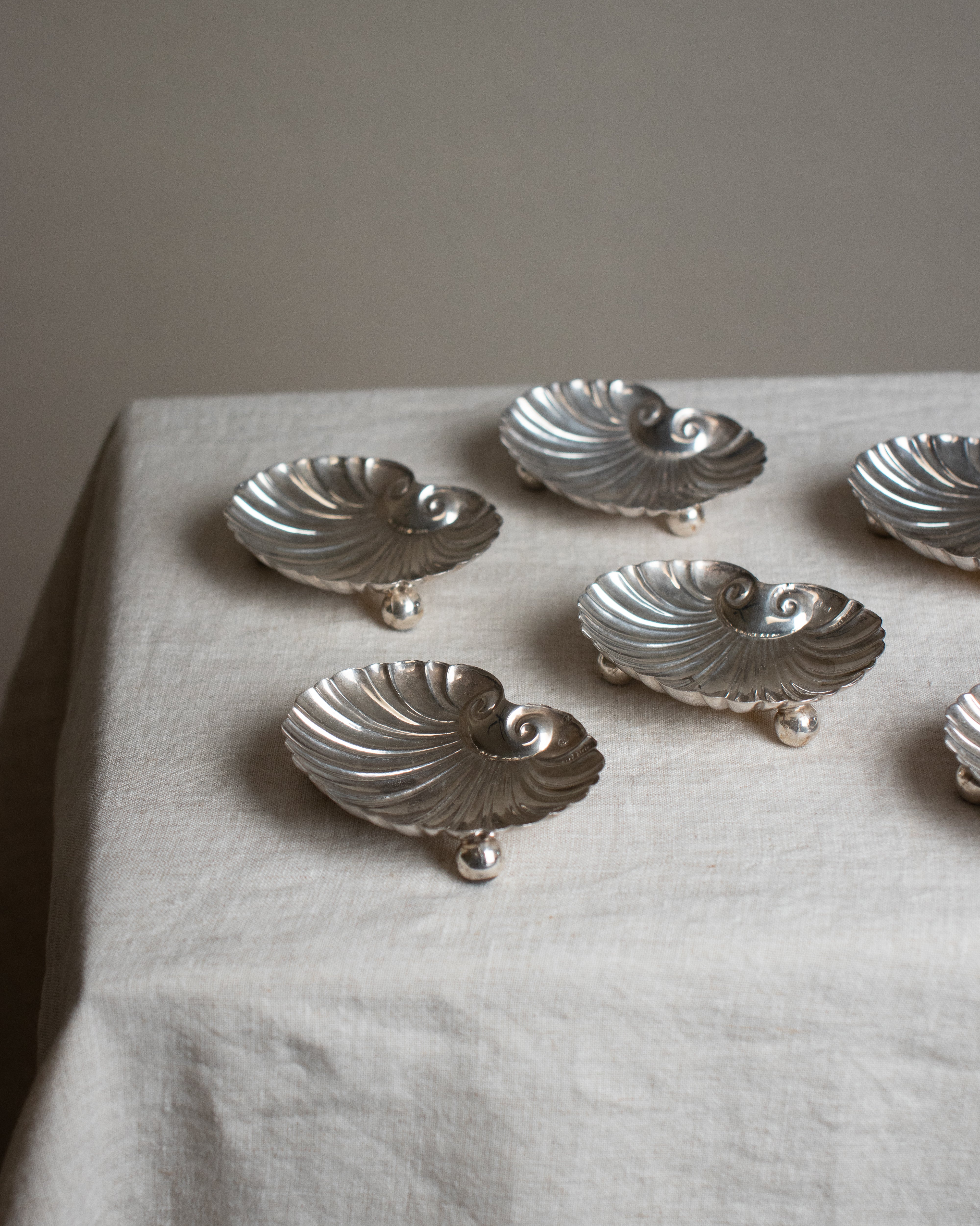 Description: Set of 6 Perez Fernandez Sterling Silver 138.9 grams Footed Shell Dishes.