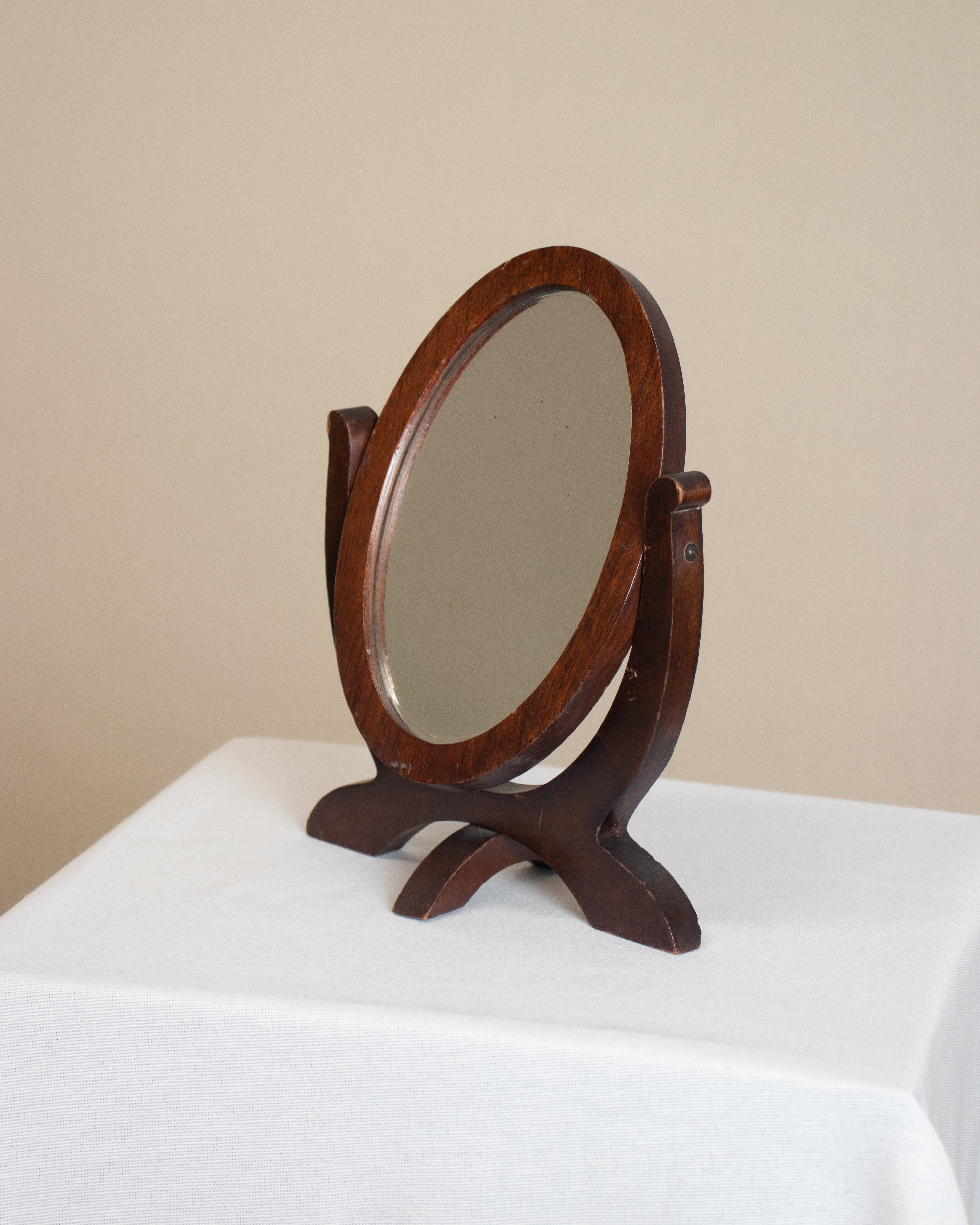 Description: Petite Victorian Dressing Mirror framed in solid mahogany wood. The mirror is angle adjustable.
