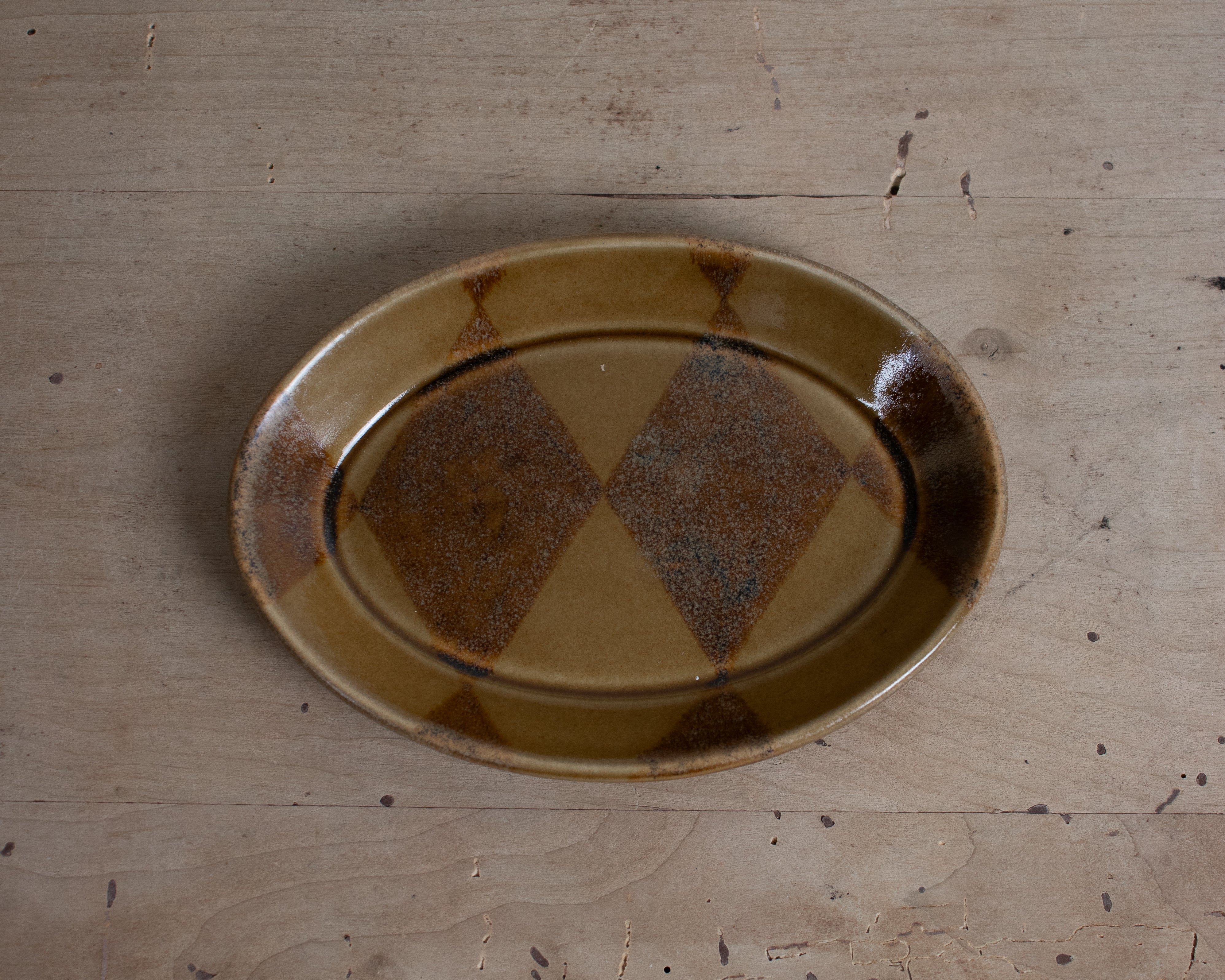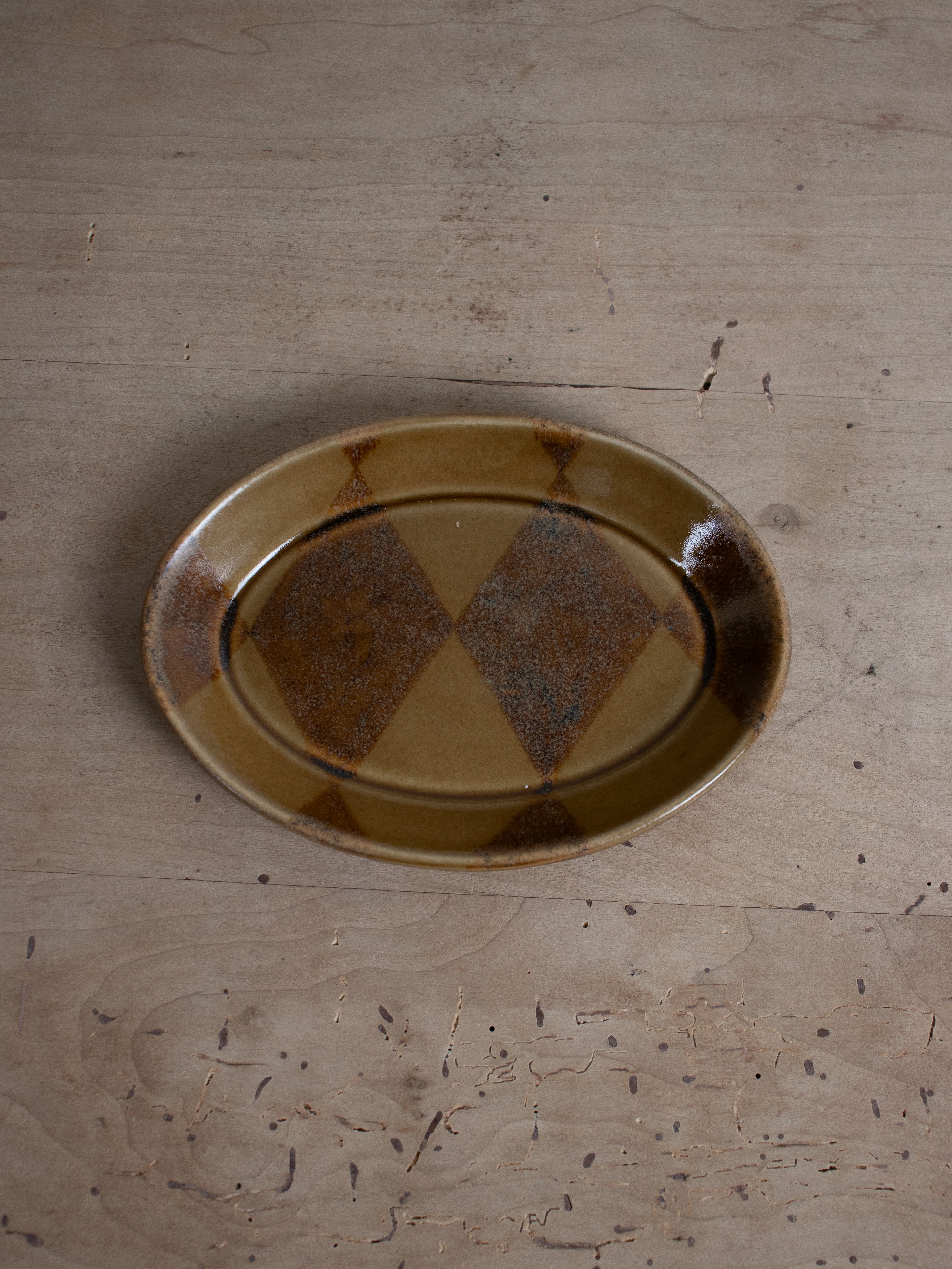 This petite tray is a true work of art, blending form and function with effortless elegance. The stoneware construction ensures long-lasting beauty, while the hand-painted harlequin pattern and honey glaze add a touch of artisanal charm. Use it to corral your jewelry, display cherished trinkets, or simply enjoy as a captivating centerpiece.