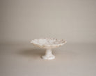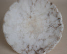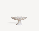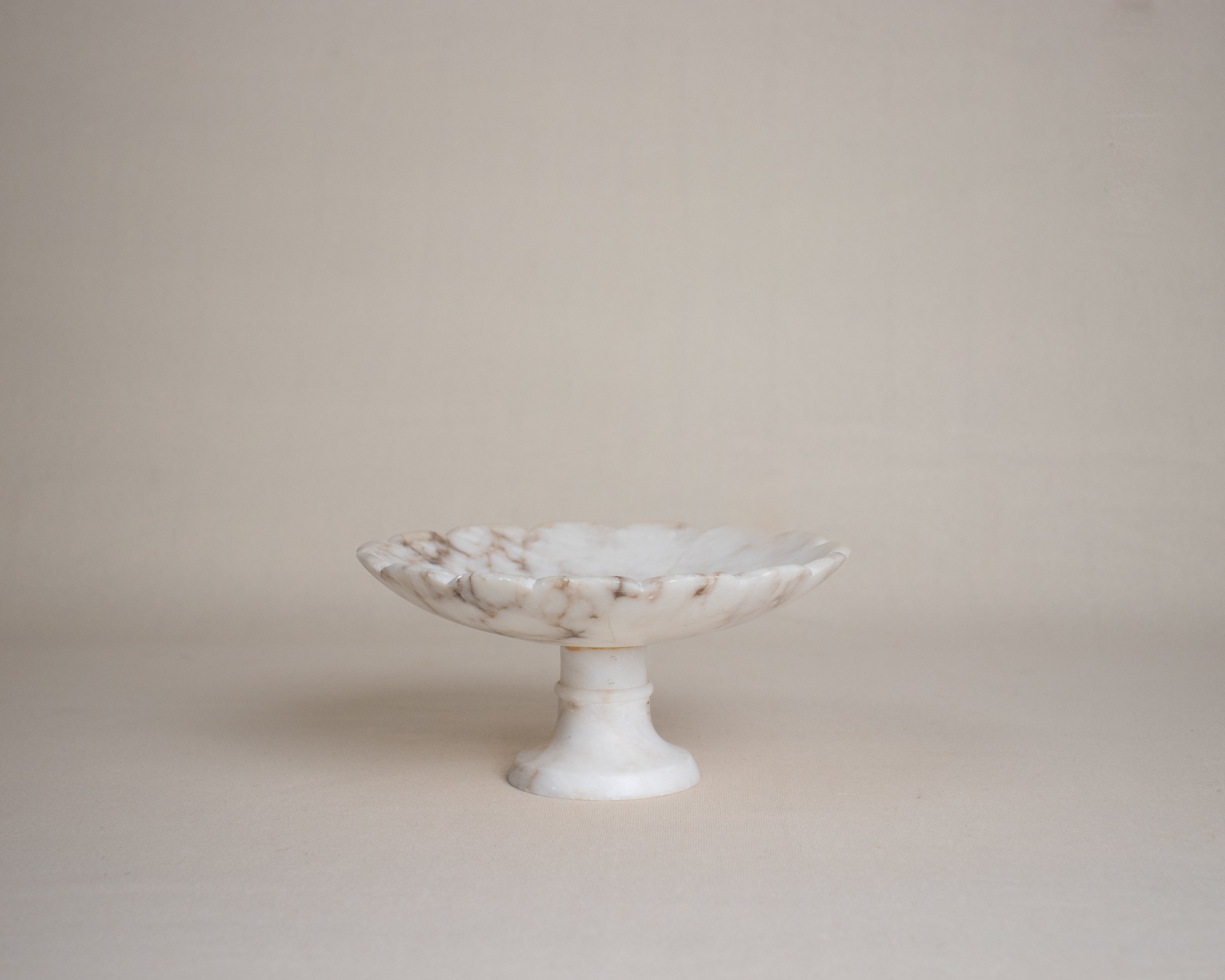 Description: Vintage Marble Pedestal Bowl with scalloped detail in a creamy white with warm veining.