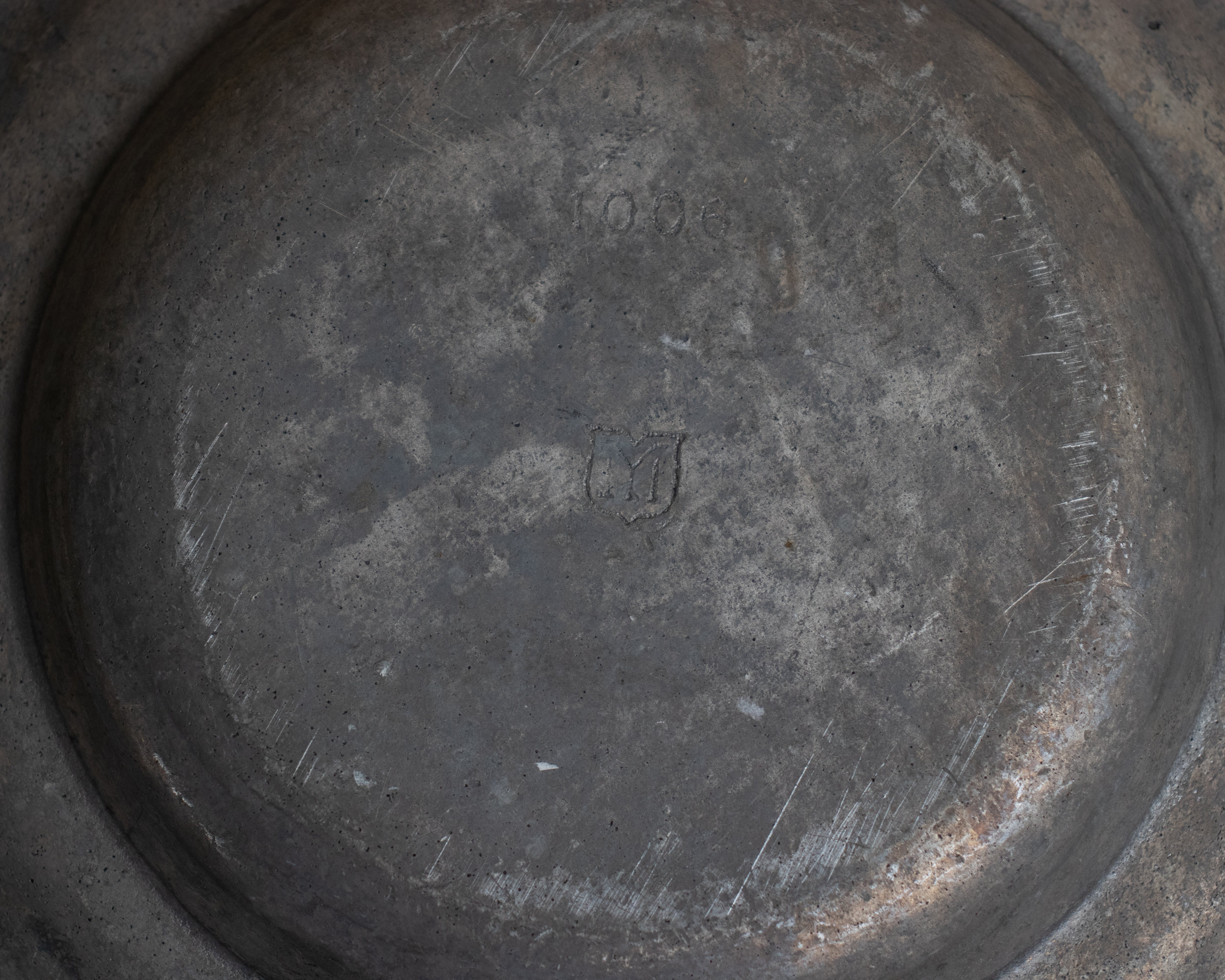 Set of 6 York Metal Pewter Plates. Rich patina consistent with age and use. Each plate has makers touch mark on the bottom.