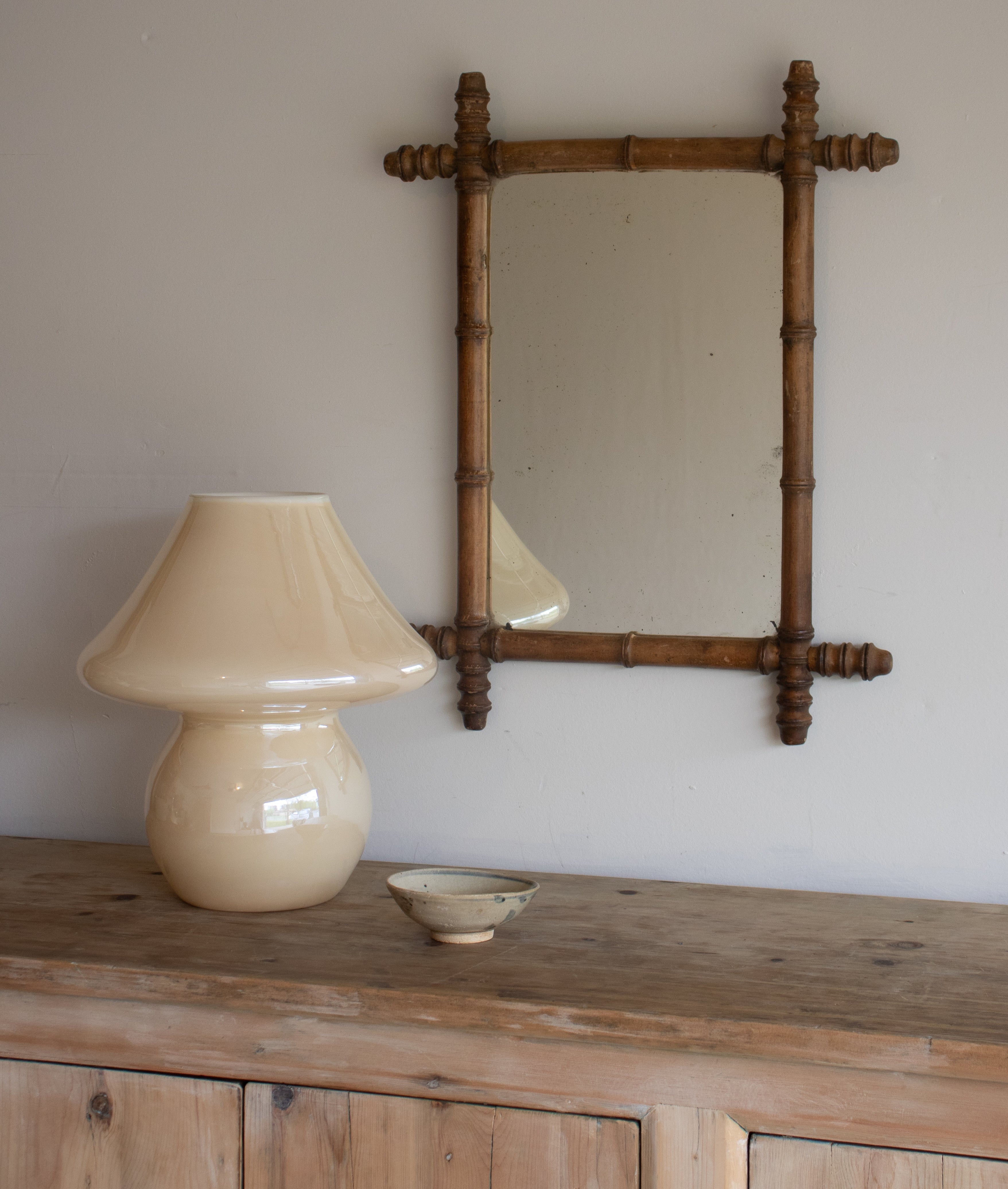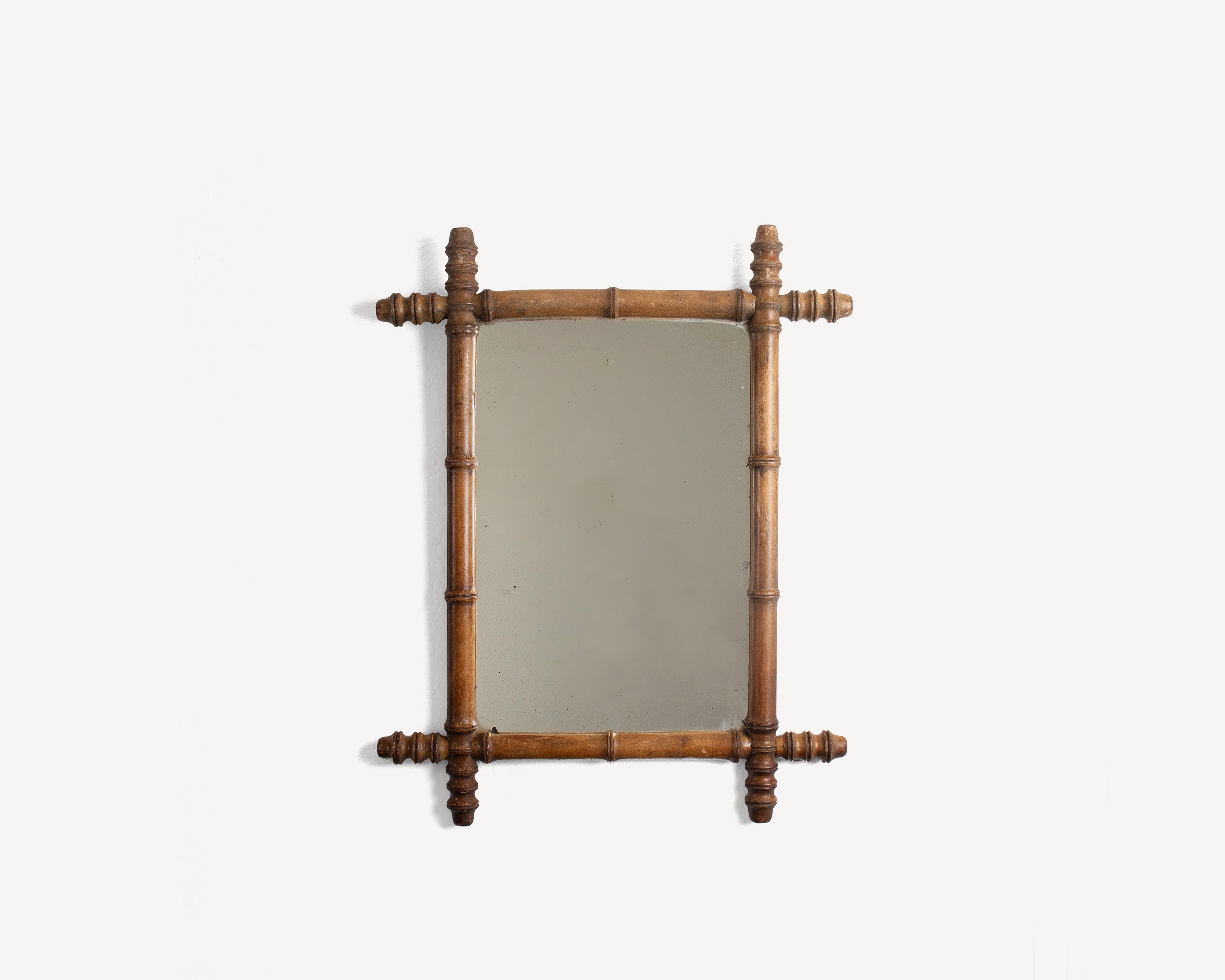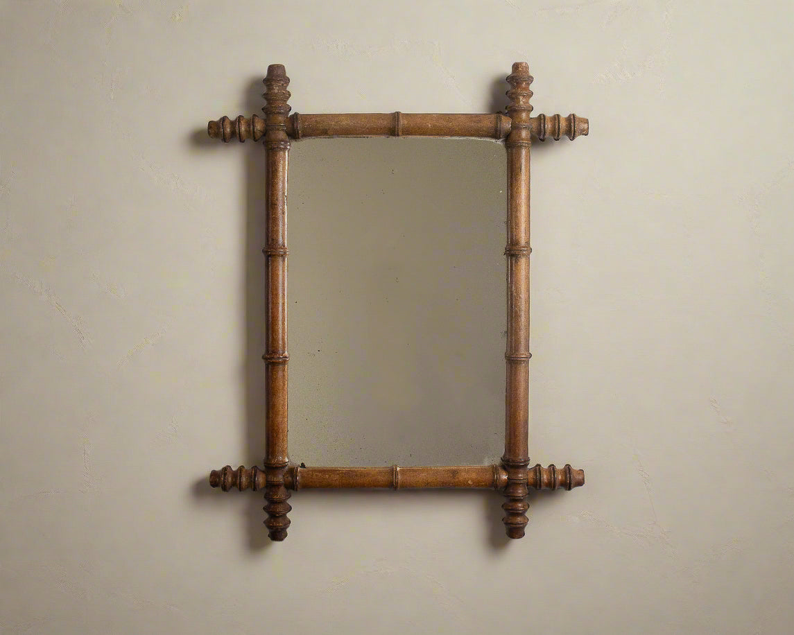 Description: French Bamboo Style Mirror circa 1900s. Wear on mirror is consistent with age and use.