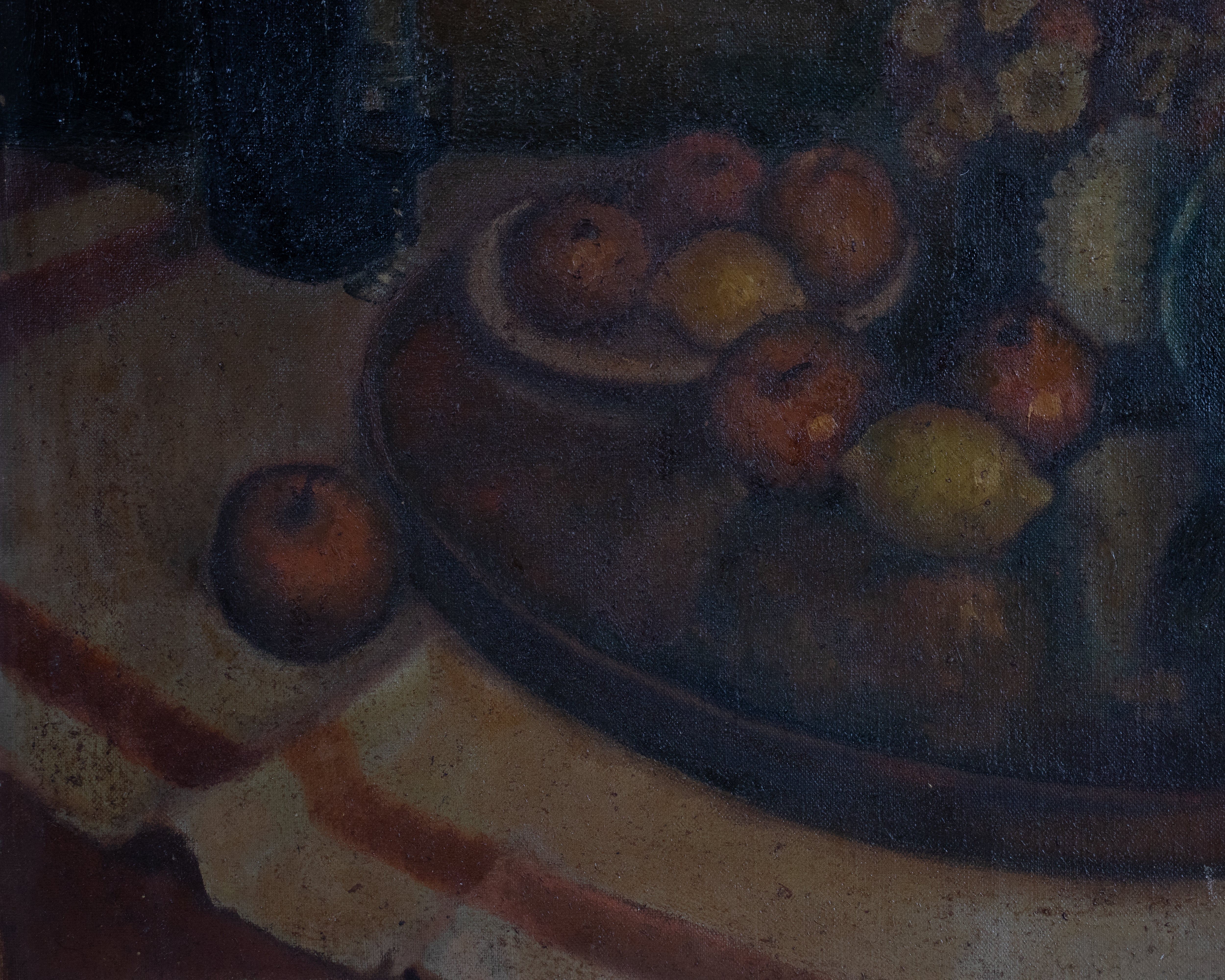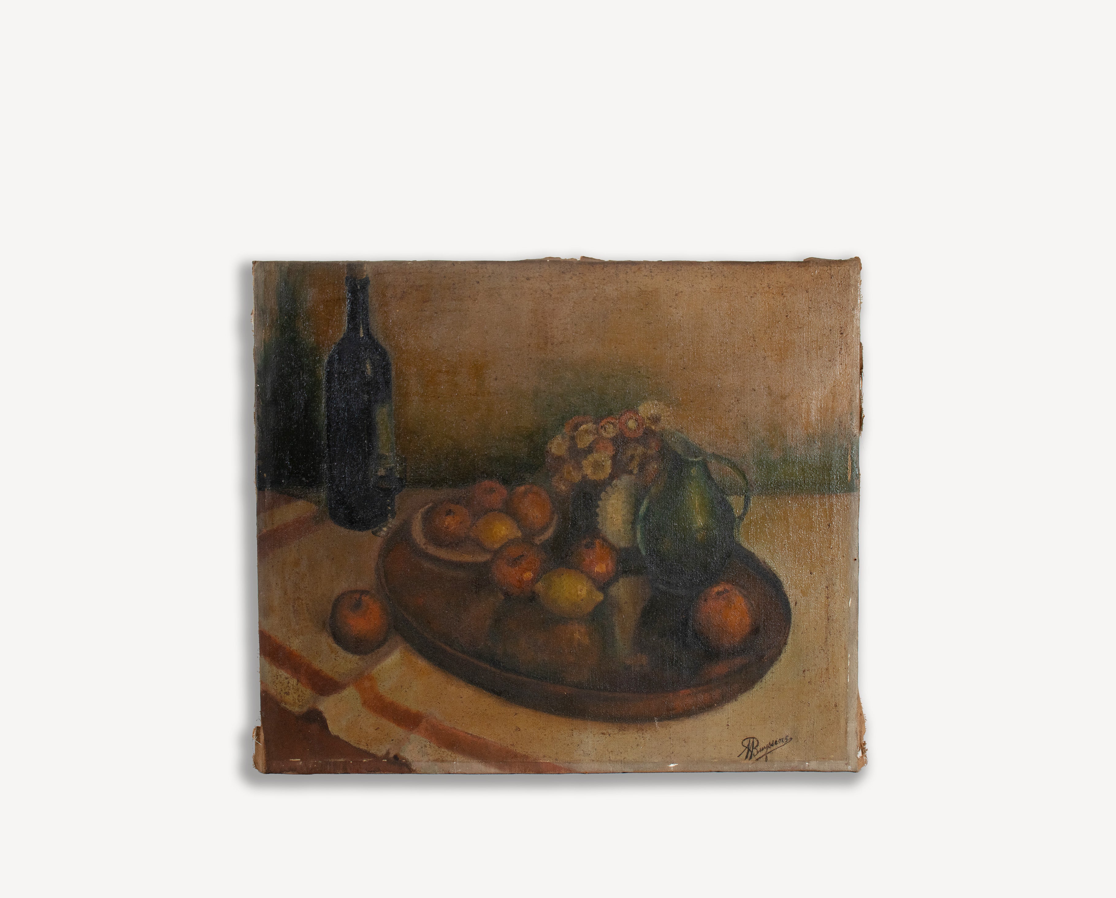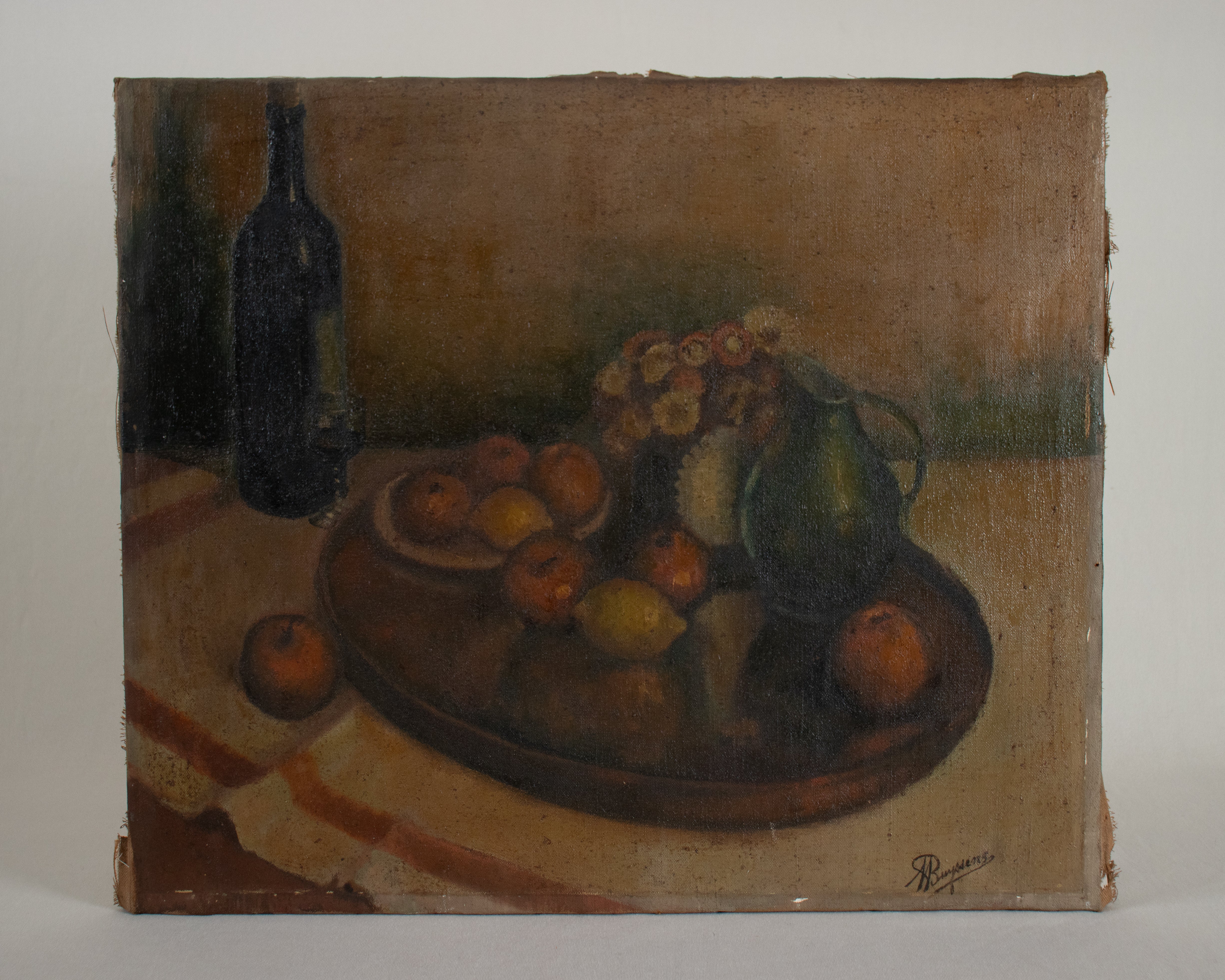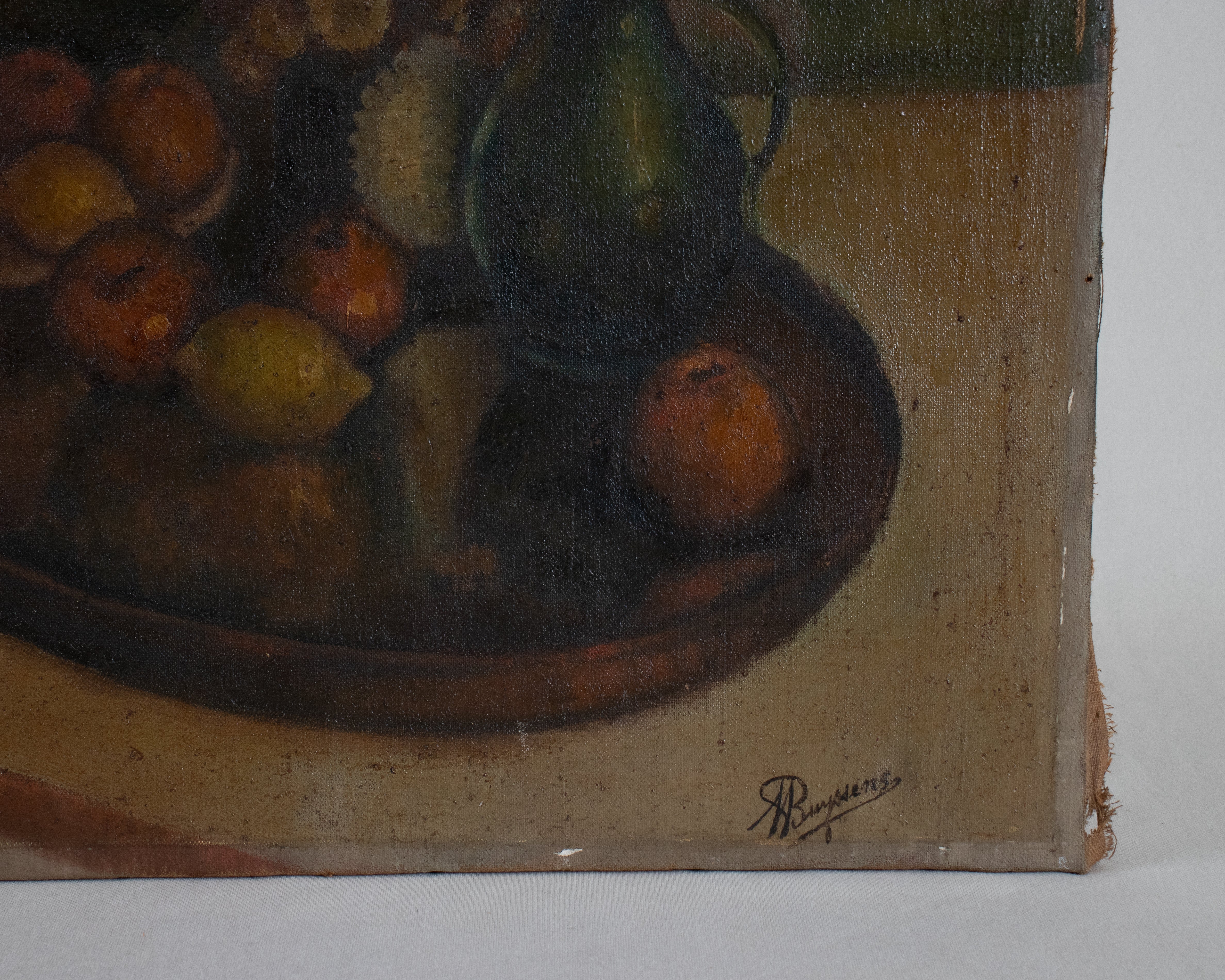 Description: Vintage Still Life Oil Painting of Fruit. Unframed and Signed in the lower right corner.
